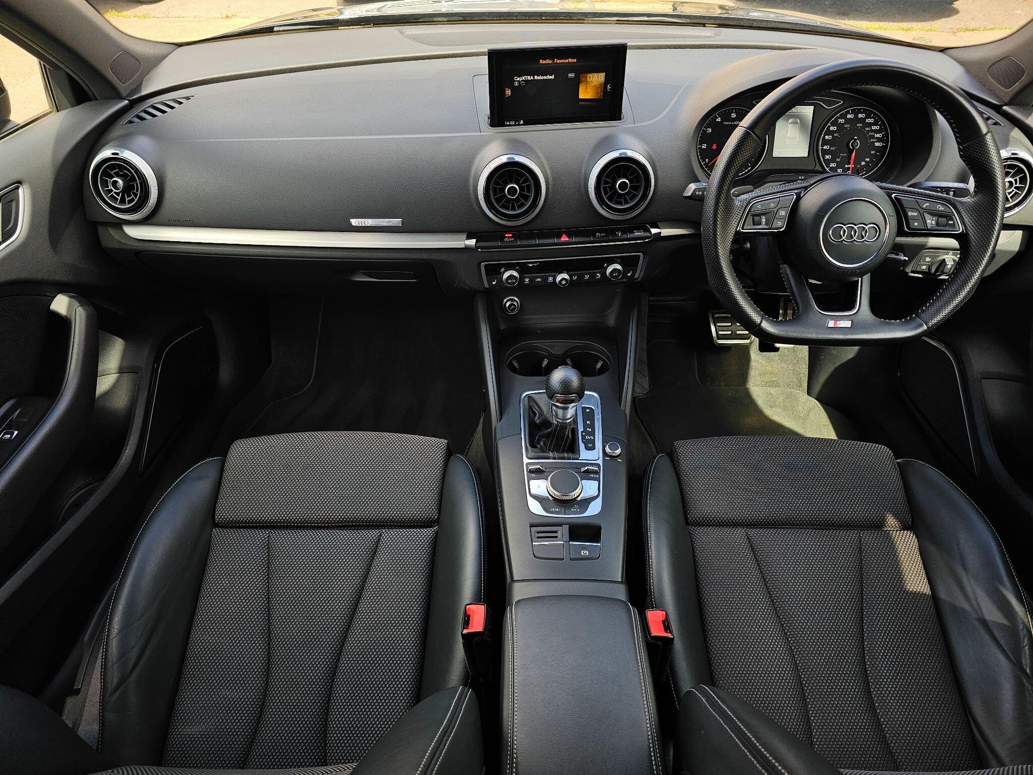 Kingston cars and Vans present this nice and clean Audi A3 1.4l TFSI CoD Black Edition Sportback S Tronic Euro 6 (s/s) 5dr , genuine mileage and excellent 1.4l TFSI engine,Full Service history, Last service done 50 miles ago include (Oil, Oil filter ,Air filter ,Cabin filter,Front and Rear Disc and Pads,Automatic Gearbox service too),Timing Belt done, Long MOT until 23/March/ 2027, Very stylish A3 1.4l with wonderful colour, Fantastic engine & Automatic gearbox with Paddle shifts ! Finished in stunning Mythos Black Metallic with S Line Leather/Cloth in Black , Brushed Aluminium dashboard trim. Spec includes: Fully Refurbished 18" Ten Spoke Black Edition Design alloy wheels,Front tyres Brand New,Flat Bottom Sports leather multifunction steering wheel, Rear parking sensors , Audi Navigation MMI , Bluetooth telephone preparation ,Car Apple Play, Multimedia Dab radio/USB ports / Aux with Bang and Olufsen sound system ,Heated Front Seats,Adaptive Bi-Xenon Headlights with LED Daytime Running Lights, Stability and traction control , Cruise Control, Audi Thatcham Category 1 alarm and immobiliser, Electric windows, Dual zone electronic climate control with Separate Air Distribution and Digital Display, Electrically adjustable/ heated door mirrors, Remote central locking, Tool kit, spare wheel, all documents and user handbooks. Covered just over 72K genuine miles with Full Service History , vehicle is completely original and unmodified,Excellent exterior condition,nice and clean non smoking interior,Powerful and economical 1.4l TFSI engine with 150 Bhp,Vehicle can return 67 MPG on a long run and drives superbly,Road tax cost £35 for 12 months and can be purchased online,HPI Checked and clear with certificate, 6 months parts and labour Warranty by Autoguard Warranty included in the price, P/X welcome, Finance available subject to status,Viewing by appointment so please call or mail us,for more stock please visit our website-www.kingstoncarsandvans.co.uk