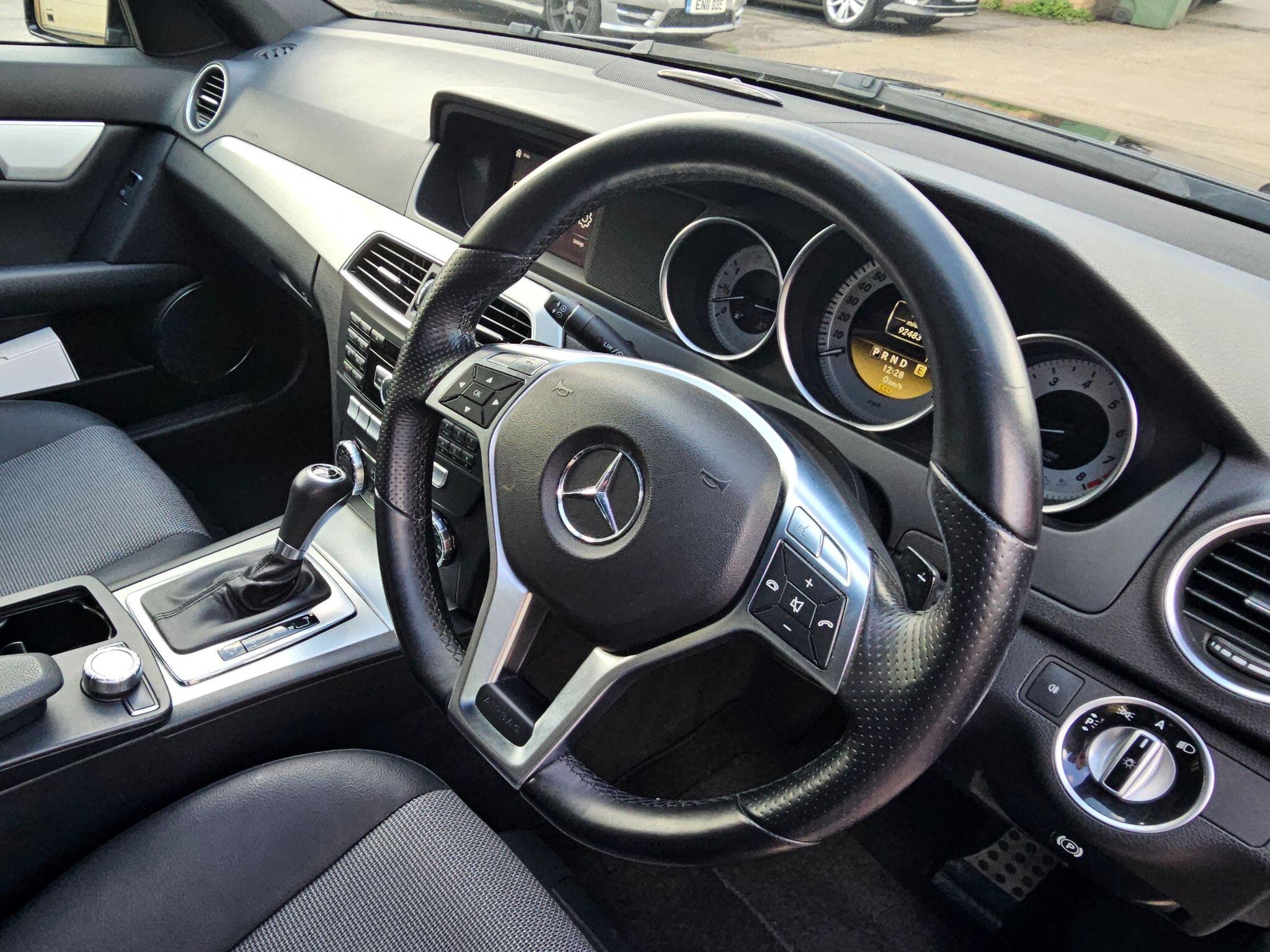 Kingston Cars & Vans present this nice and clean Mercedes C Class 1.8 C180 BlueEfficiency Sport G-Tronic+ Euro 5 (s/s) 5dr in excellent condition, Stunning colour combination,Good Spec of option equipment, genuine mileage and absolutely amazing look! Full Service history .Last full service done 50 miles ago( Oil,Oil Filter,Cabin Filter,Air Filter ,used Original Part we present invoice for it), MOT until March/2027 ,Very stylish automatic C Class Sport Estate with wonderful colour,fantastic petrol engine and nice and smooth & Automatic gearbox with Paddle Shifts ,finished in stunning Obsidian Black metallic with Full Black leather interior and Aluminium trim .Spec includes: Refurbished MB 17" 7 arm Sport alloy wheels with four Continental tires in very good condition ,Front and Rear Parking Sensors ,Leather multifunction steering wheel, Electric front seats,Car Apple Play,Navigation MB Hi-Fi System RDS radio/CD,USB and AUX ports ( under Arm rest) for Playing devices, Bluetooth telephone hands free in fully working order, Xenon Headlights with wash system, Rain sensor & auto driving lights, Cruise control, Automatic dimming rear view mirror, Automatically folding door mirrors,Electric windows, Electronic climate control,Remote central locking,Tool kit, spear wheel, all documents and user handbooks,Set of 2 remote keys etc. Covered just 92k genuine miles with full service,The vehicle is completely original and unmodified, Excellent exterior condition, very nice and clean non smoking interior, Magnificent 1.8l petrol engine with 156 Bhp,Vehicle can return 44 MPG on a long run and drives superbly,HPI Checked and clear with certificate, 3 months parts and labour Warranty by Autoguard Warranty included in the price,Part exchange welcome, for more stock please visit our website www.kingstoncarsandvans.co.uk
