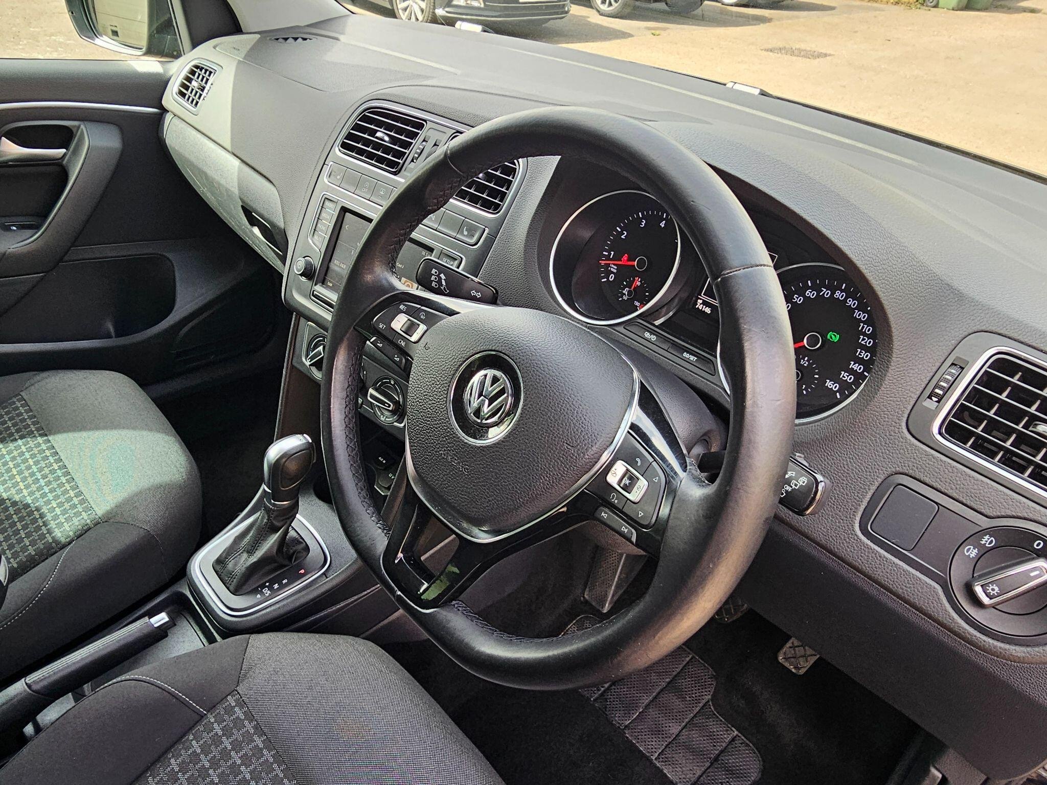 Kingston Cars and Vans present this nice clean Volkswagen Polo 1.2 TSI BlueMotion Tech SEL DSG Euro 6 (s/s) 5dr in one of the best color combo and Good Spec of options ,Genuine Low Mileage and Excellent 1.2l petrol engine with 110 BHP, Full Service History , Last Full Service done 50 miles ago including (Oil ,Oil Filter,Air Filter ,Cabin Filter ,Front and Rear Disc and Pads we present invoice for the parts, when you visit us ), MOT until April/2027 , Very stylish Polo 1.2 with wonderful colour , Fantastic Engine and Nice and Smooth 7 Speed Automatic Gearbox. Finished in stunning Deep Black Pearlescent with Cloth Sports Seats and Aluminium dashboard trim, spec includes: Unmarked 16" 5 Spoke Arm Alloy wheels with 4 Brand New tires, Front and Rear Parking Sensors ,Original Led Headlights,Cruise Control ,Multifunction leather steering wheel ,6.5 in Colour Touch - Screen, DAB Radio System/MP3 Compatible CD Player with AUX and USB for Connection to an External Multimedia Source, Bluetooth connectivity, Front Heated seats with height adjustment,Start/Stop System, Day running Lights , Stability and traction control, Volkswagen anti theft alarm and immobiliser ,Electric windows, Manual Air Condition ,Automatic Electrically /Adjustable/Heated door mirrors ,Remote central locking ,Tool kit, Spare Wheel, All documents and User handbooks, Set of 2 remote keys etc. Covered just 74k genuine miles with full Service History ,The vehicle is Completely Original and Unmodified, Excellent exterior condition, very nice and clean non smoking interior, Powerful and economical 1.2L petrol engine with 110 Bhp, Vehicle can return 68 MPG on a long run and drives superbly ,HPI Checked and clear with certificate ,Road tax is £20 per year and can be purchase online,FREE 3 months parts and labour Warranty by Autoguard Warranty included in the price, P/X welcome ,Viewing by appointment so please call or mail us, for more stock please visit our website-www.kingstoncarsandvans.co.uk